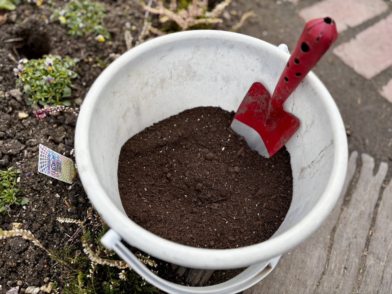 鉢が移動不可だったので現場で植え込みました